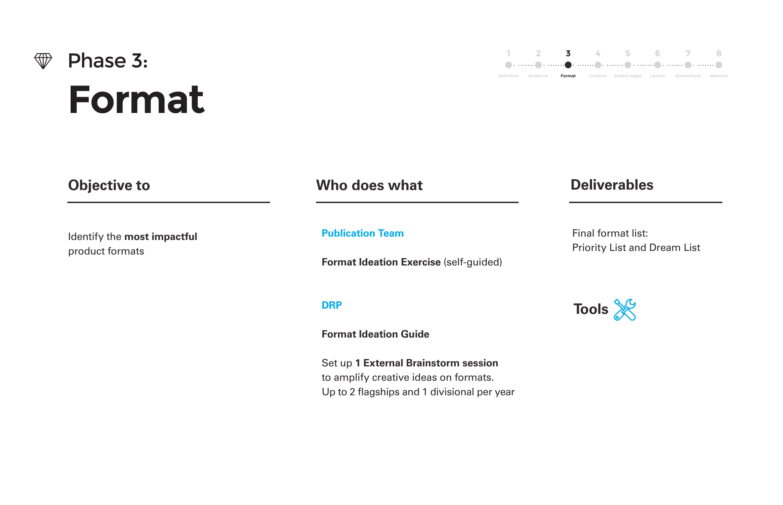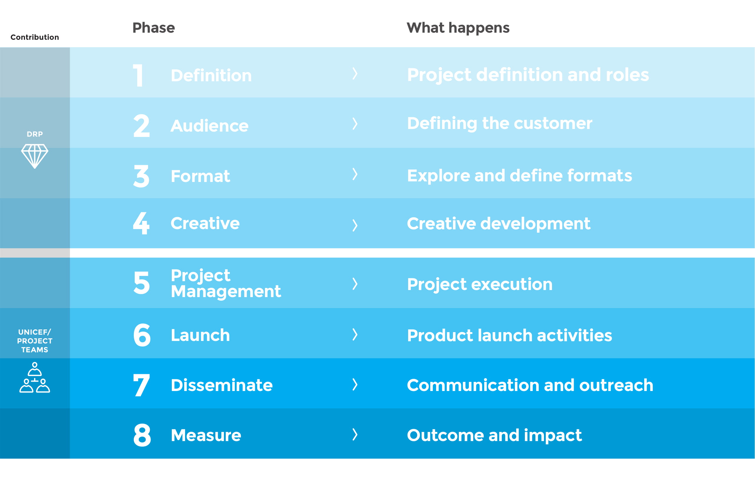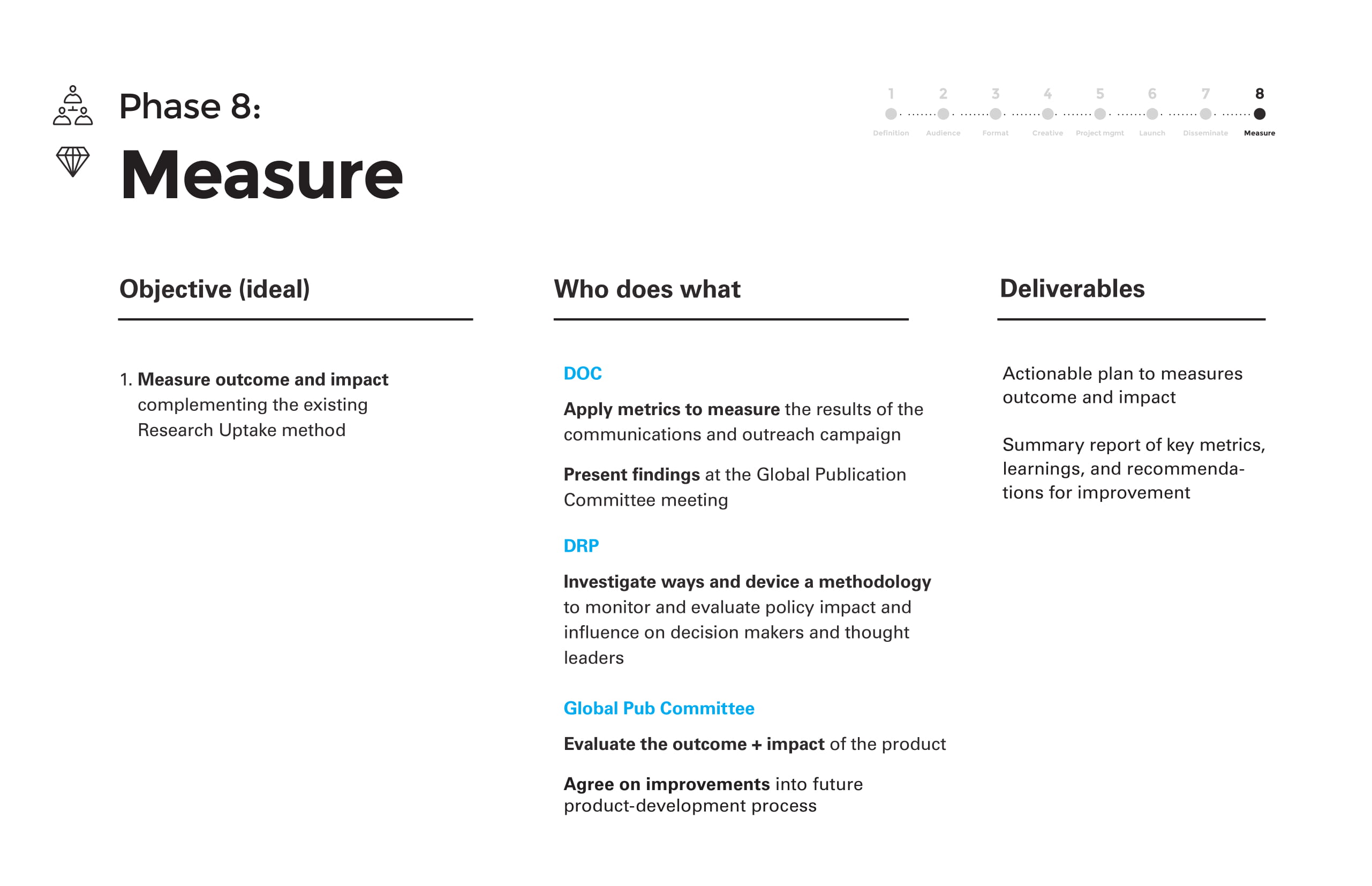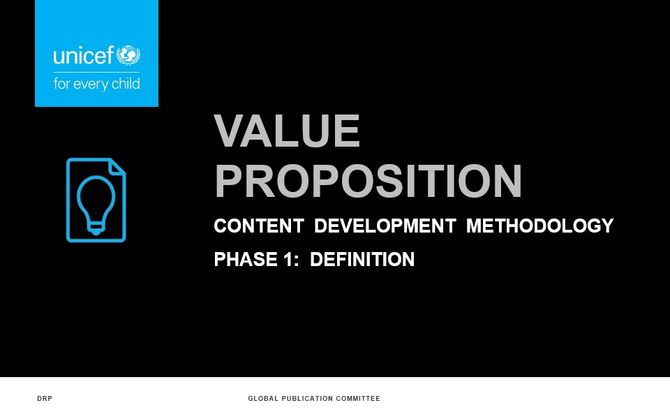 Ian created this content-development methodology to guide the content strategy and process for UNICEF’s flagship publications. This presentation deck outlined the 8 phases of the methodology.