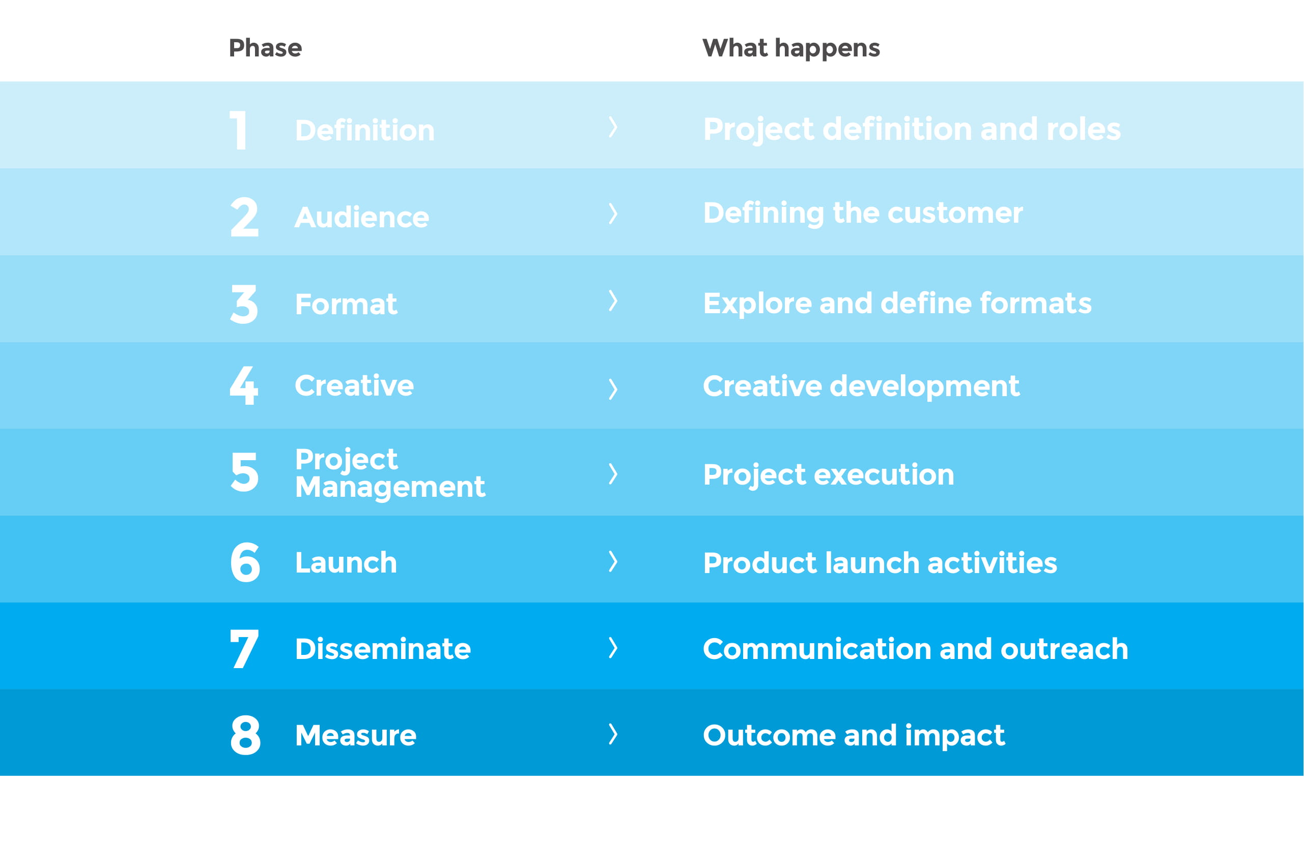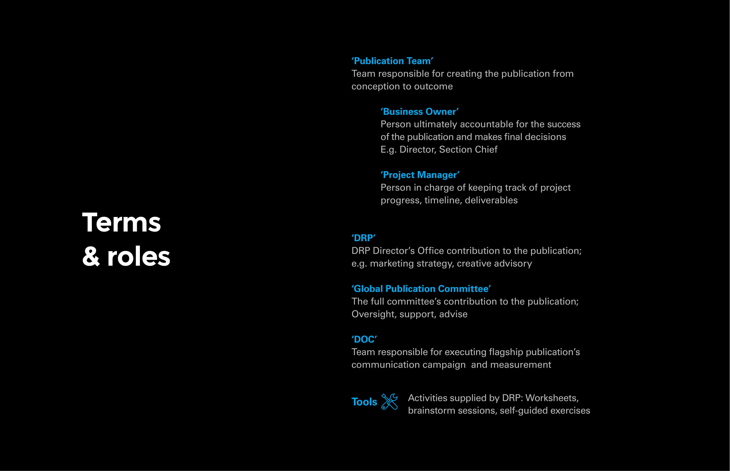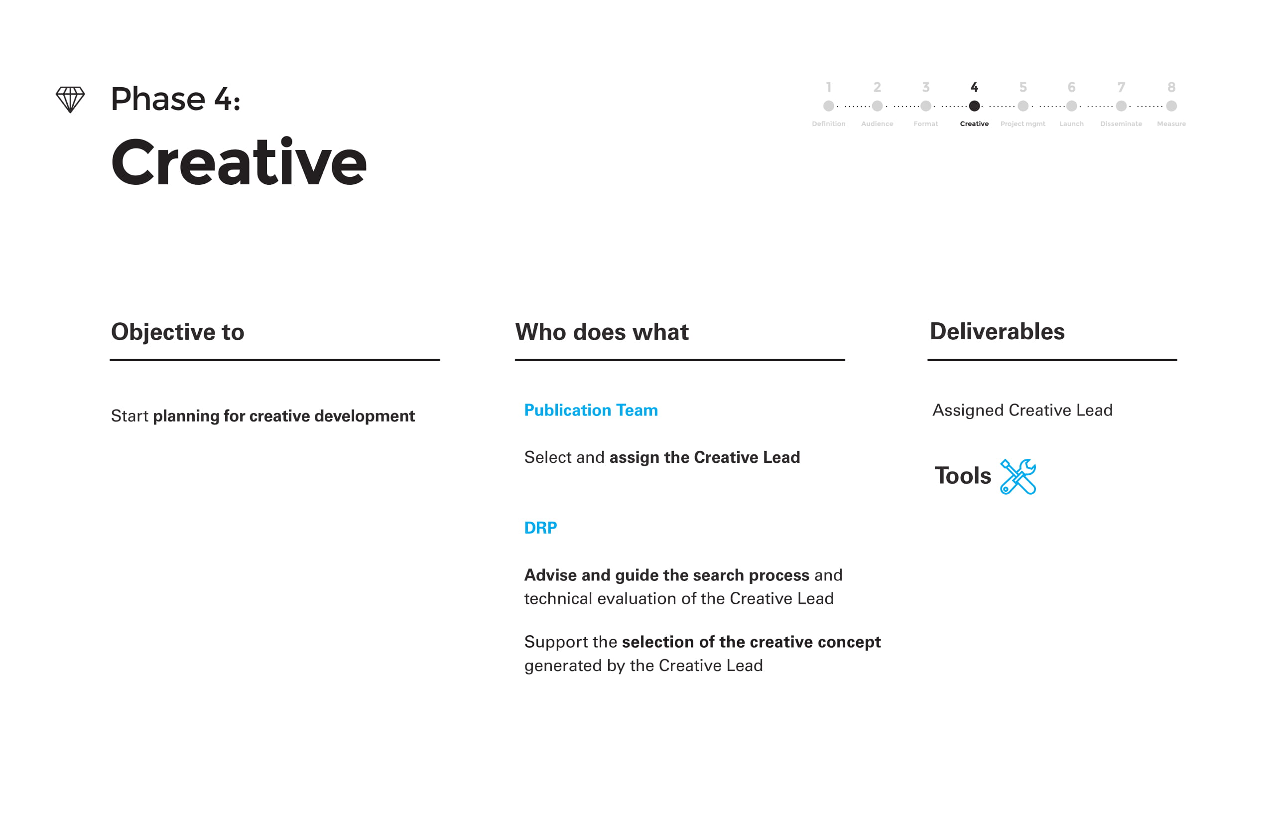 Ian created this content-development methodology to guide the content strategy and process for UNICEF’s flagship publications. This presentation deck outlined the 8 phases of the methodology.