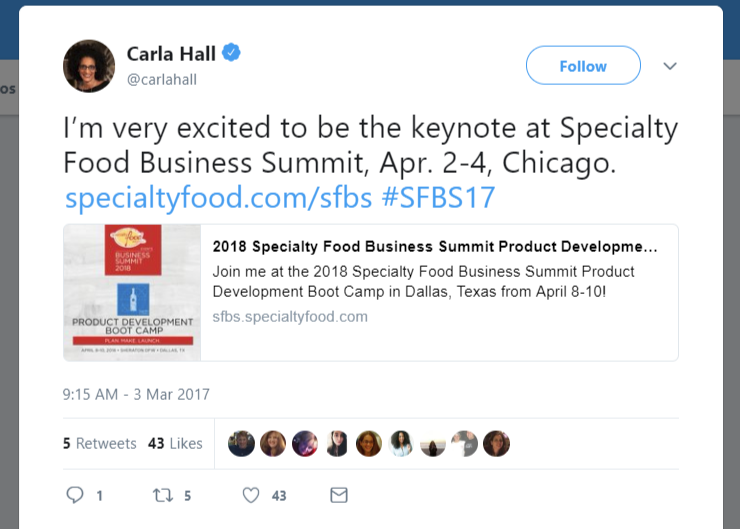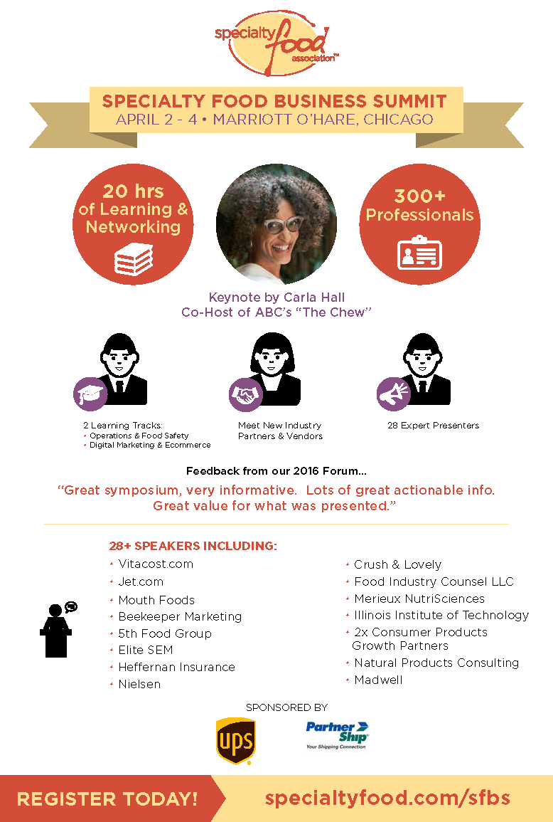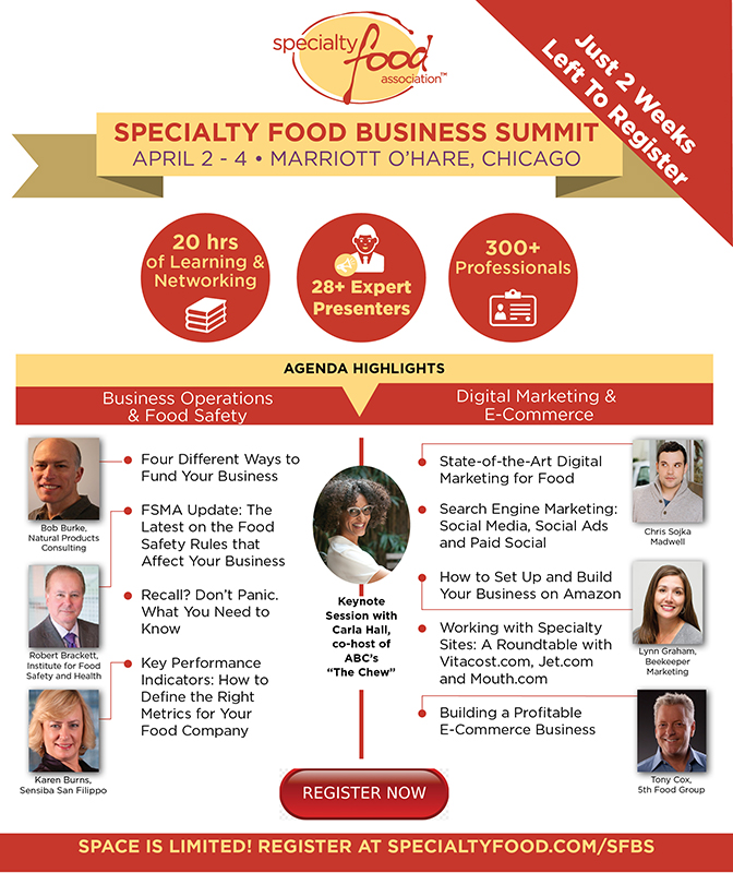 Leveraging the social influence of the celebrity keynote speaker, Ian crafted an integrated marketing campaign to attract qualified attendees to the Specialty Food Business Summit.